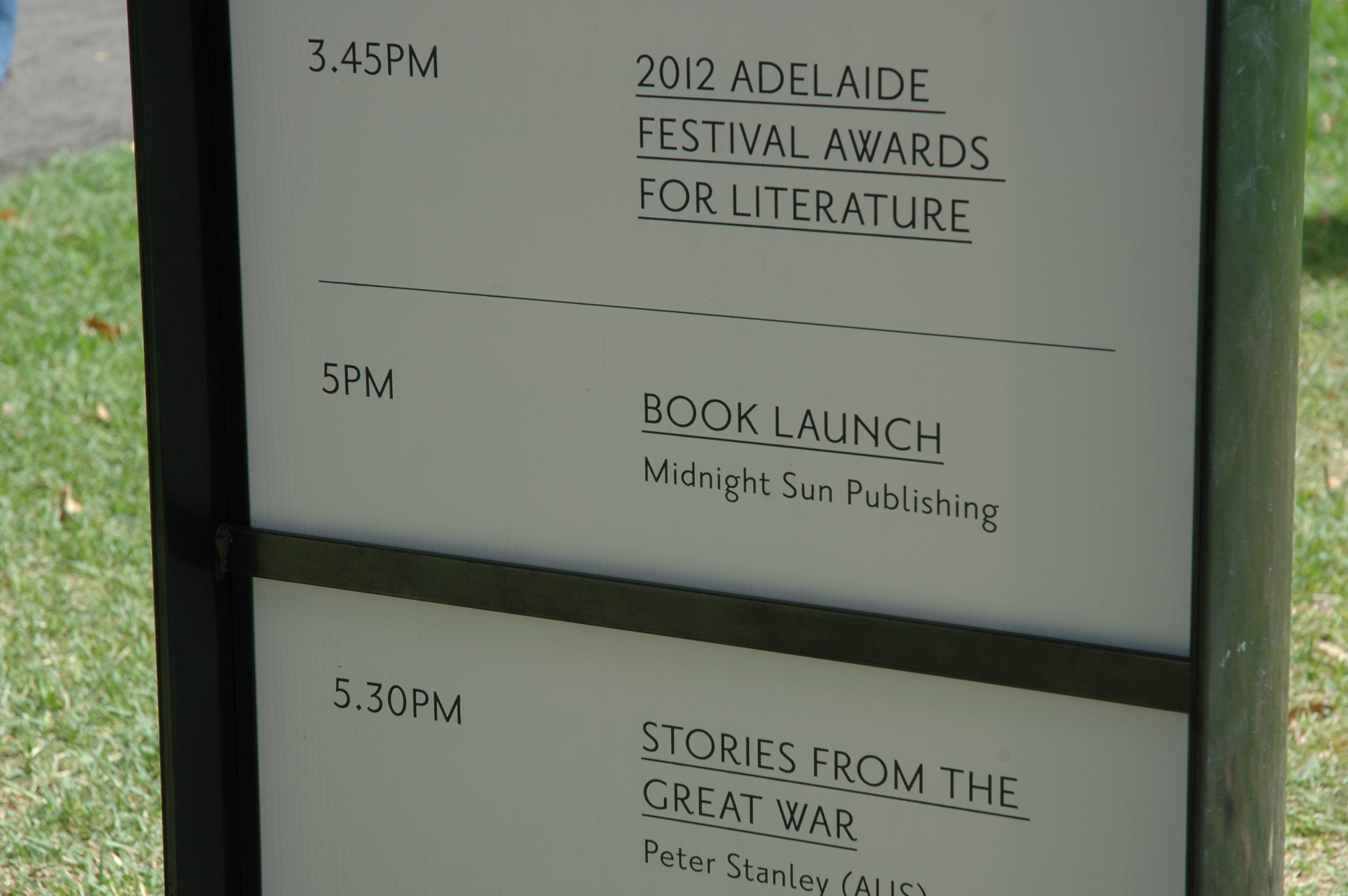 Finally, the day had come to launch MidnightSun Publishing’s first book ever! Anna Solding’s enchanting novel The Hum of Concrete was about to take flight from the most wonderful writers’ festival in the world, Adelaide Writers’ Week. Amongst the trees of the Pioneer Women’s Memorial Garden, highly esteemed writer Sean Williams said a few well-chosen words on stage before Anna proceeded to tell the audience an ice-breaker: Continue reading The Hum of Concrete is launched at Adelaide Writers’ Week→
